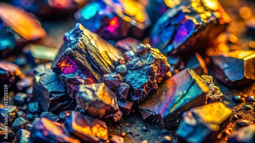 © Adisorn, Fototapeta premium Aerial Drone Shot: Magnetite Mineral Texture, Close-Up, Rough Surface, Dark Metallic Ore