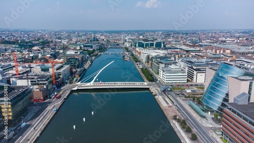 Obraz premium Aerial drone shot of Dublin city center with iconic bridge