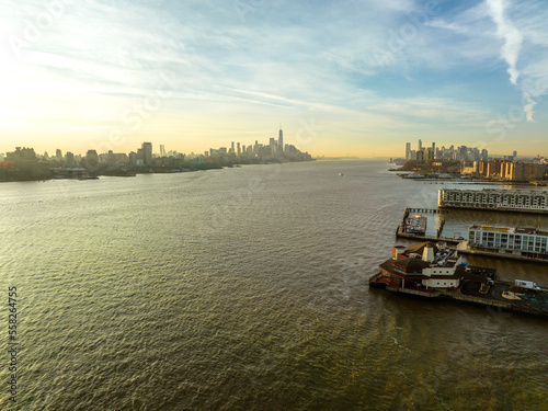 © Jin, Naklejka premium Aerial Drone Sunrise in Weehawken New Jersey