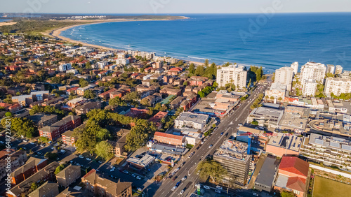 © Steve, Fototapeta premium Aerial drone view above Cronulla in the Sutherland Shire, South Sydney, NSW Australia looking in the east direction on a sunny afternoon in September 2023