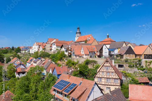 © Jürgen Wackenhut, Fototapeta premium Aerial drone view, city view of Gochsheim