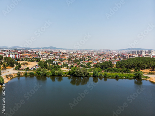 Fototapeta premium Aerial Drone View of Aydos Forest Lake in Istanbul