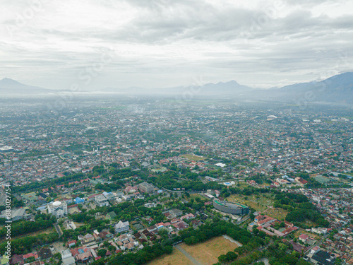 Fototapeta premium Aerial drone view of big city skyline scenery in Banda Aceh, Aceh, Indonesia.