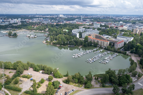© Michalis Palis, Fototapeta premium Aerial drone view of Helsinki cityscape capital of Finland