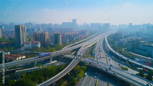 Naklejka premium Aerial Drone View of modern Urban City Flyover. ai-generated