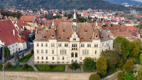 Obraz premium Aerial drone view of the Historic Centre of Sighisoara, Romania