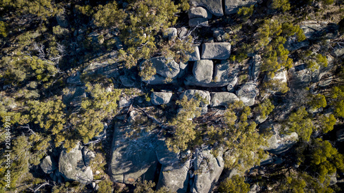 © Melanie, Obraz premium Aerial drone view over wineries and granite rock in Stanthorpe, Australia