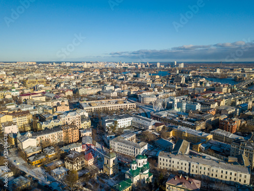© Sergey, Fototapeta premium Aerial drone view. View of the streets of Podil.