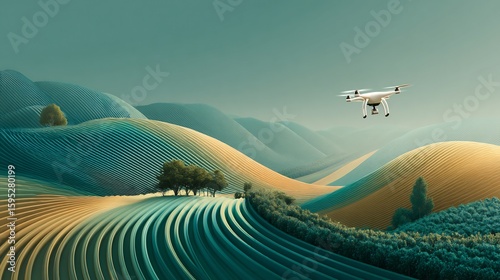 © Haifa, Fototapeta premium Aerial exploration over the serene landscape with vibrant fields and rolling hills