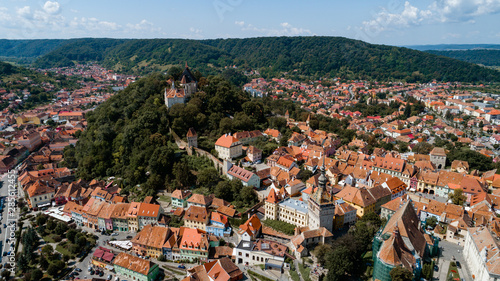 Obraz premium Aerial footage of an old eastern Europe town on a sunny day
