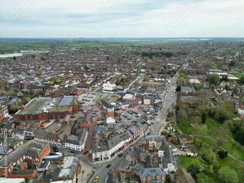 © Nasim, Fototapeta premium Aerial Footage of Central Rugby City of England During Cloudy and Windy Evening. Great Britain
