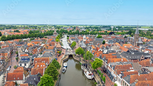© Nataraj, Fototapeta premium Aerial from the historical city Dokkum in Friesland the Netherlands