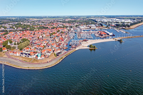 © Nataraj, Fototapeta premium Aerial from the traditional town Urk and the harbor in the Netherlands