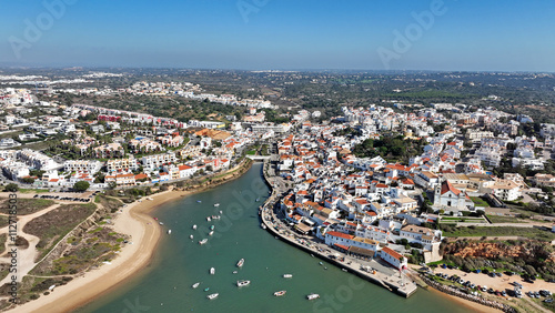 © Nataraj, Fototapeta premium Aerial from the traditional village Ferragudo in the Algarve Portugal