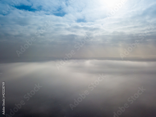 Fototapeta premium Aerial high view. Flying over the clouds.