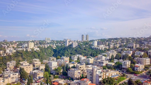 Fototapeta premium Aerial image of the city of Haifa, Israel above and over the slopes of Mount Carmel.