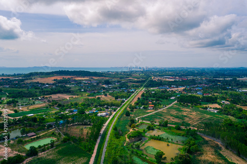 © Panwasin, Fototapeta premium Aerial landscape of Chonburi province, Thailand. Aerial view from drone
