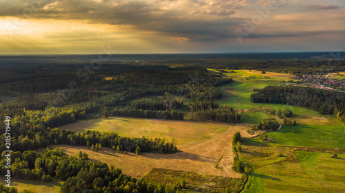 Fototapeta premium Aerial landscape - river valley at sunrise