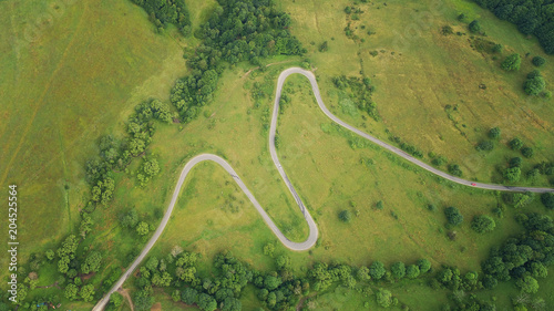 © Piotr Krzeslak, Obraz premium Aerial landscape- road between fields