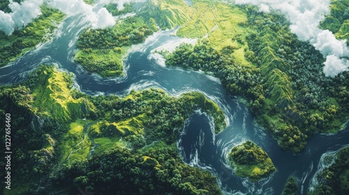 Fototapeta premium Aerial Landscape Showcasing Diverse Ecosystems and Lush Green Biomes...