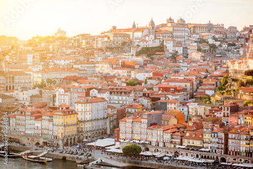 Obraz premium Aerial landscape view on the old town of Porto during the sunset in Portugal