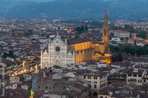 © Luca, Naklejka premium aerial night photo of Basilica of Santa Croce in Florence
