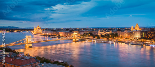 © Mapics, Obraz premium Aerial night skyline of Budapest, Hungary