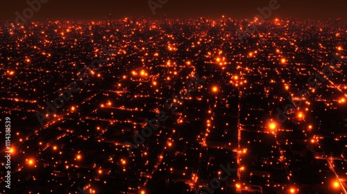 Naklejka premium Aerial Night View of City Lights: A Sea of Orange Glowing in the Darkness