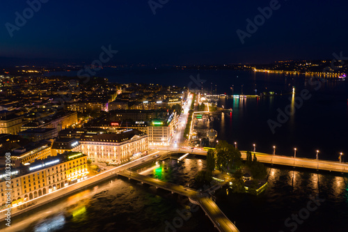 Fototapeta premium Aerial night view of Geneva city water fountain in Switzerland