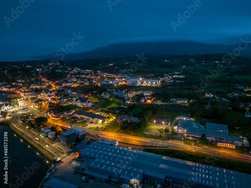 Fototapeta premium Aerial night view of Killybegs, the most important fishing harbour town in Ireland, County Donegal