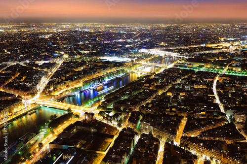 © ryanking999, Obraz premium Aerial Night view of Paris