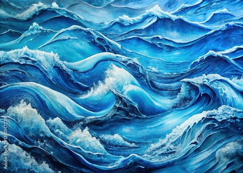 © Manatsavee, Obraz premium Aerial Ocean Texture: Frozen Wave Abstract, Blue Water Art