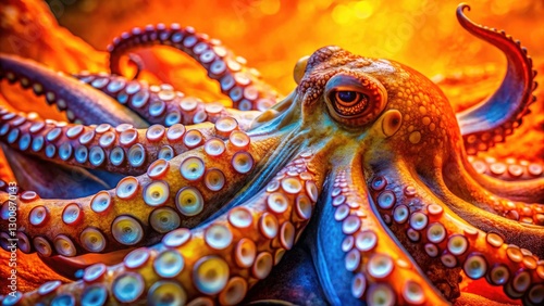© ChannelPIC, Fototapeta premium Aerial Octopus Skin Texture: Abstract Orange Background - High-Resolution Photo
