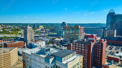 Naklejka premium Aerial of Cincinnati Skyline and Ohio River Bridge