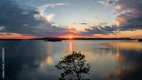 © Jason Empey Media, Obraz premium Aerial of sunset over the lake