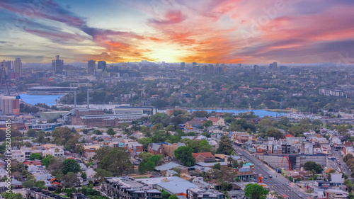 © Elias Bitar, Fototapeta premium Aerial Panorama Drone view of Parramatta River Sydney Harbour between Balmain Gladesville Birkin Head Point and Roselle on the Bay Run Sydney NSW Australia