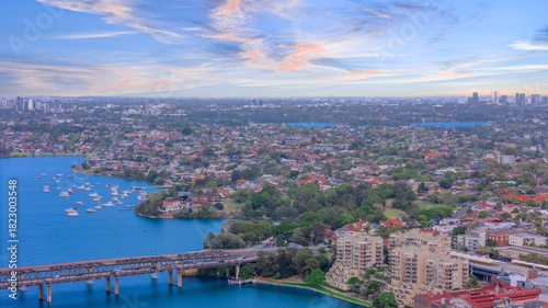 © Elias Bitar, Fototapeta premium Aerial Panorama Drone view of Parramatta River Sydney Harbour between Balmain Gladesville Birkin Head Point and Roselle on the Bay Run Sydney NSW Australia