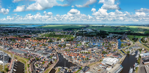 © Nataraj, Fototapeta premium Aerial panorama from the historical city Lemmer in Friesland the Netherlands