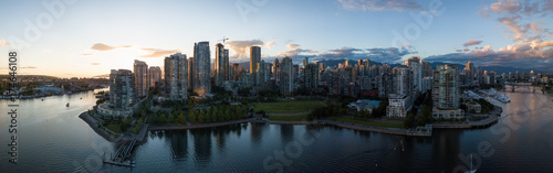 © edb3_16, Fototapeta premium Aerial Panorama of Downtown City w False Creek, Vancouver, British Columbia, Kanada. Zrobione podczas jasnego zachodu słońca.