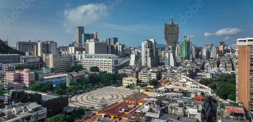 © Dave, Fototapeta premium Aerial Panorama of Macao Cityscape From Tall Building