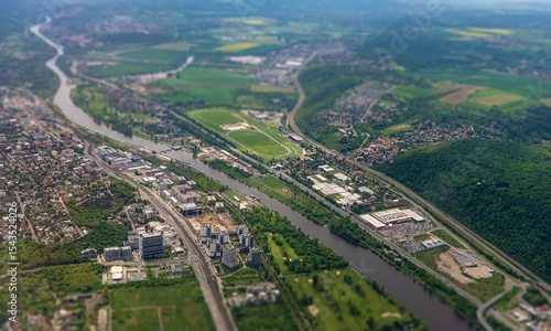© M-Production, Fototapeta premium Aerial panorama of Prague 12 district under a clear sky.
