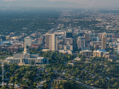 © oldmn, Fototapeta premium Aerial panorama of Salt Lake City downtown