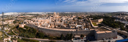 Fototapeta premium Aerial panorama shows Mdina, Malta, with limestone ramparts, St. Pauls...