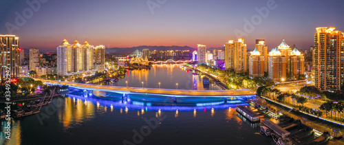 © Chenxiaoyang, Obraz premium Aerial panorama view of cityscape of Fuzhou in China