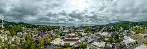 Fototapeta premium Aerial panorama view of Nyack New York with the Hudson river and the Mario...
