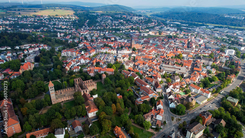 Fototapeta premium Aerial Panorama View Of The Old Town Of The City Bad Hersfeld in Germany on...