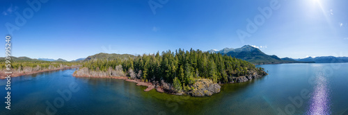 © edb3_16, Fototapeta premium Aerial Panoramic View of Canadian Mountain Landscape and Lake. Taken in Vancouver Island, British Columbia, Canada. Nature Background Panorama