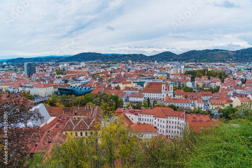 Obraz premium Aerial panoramic view of city from Schlossberg, Graz, Austria