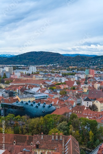 Obraz premium Aerial panoramic view of city from Schlossberg, Graz, Austria