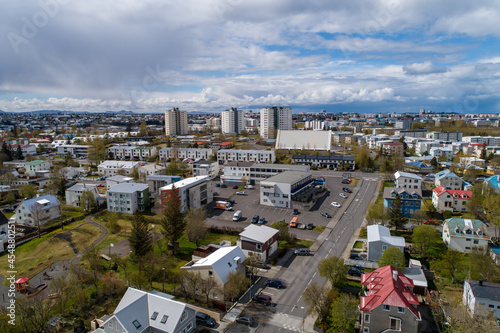 © Dund Photography, Fototapeta premium Aerial peaceful modern town with residential buildings